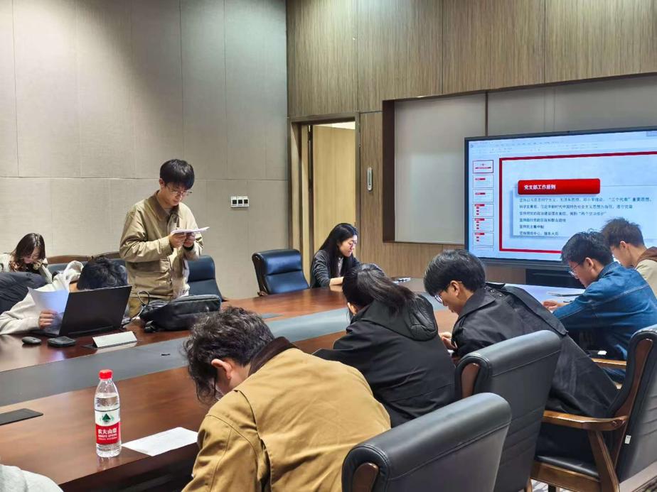 会议伊始,支部书记带领全体与会党员认真学习了党的二十届四中全会精神。会议强调,要深刻领会党中央的重大决策部署,将会议精神与实际学习和科研工作紧密结合。特别是作为机器人工程专业的学生党员,要心系“国家事”、肩扛“国家责”,将个人研究方向与国家战略需求相结合,在智能制造、机器人技术等关键领域勇于创新攻关,为实现科技自立自强贡献青春力量。
