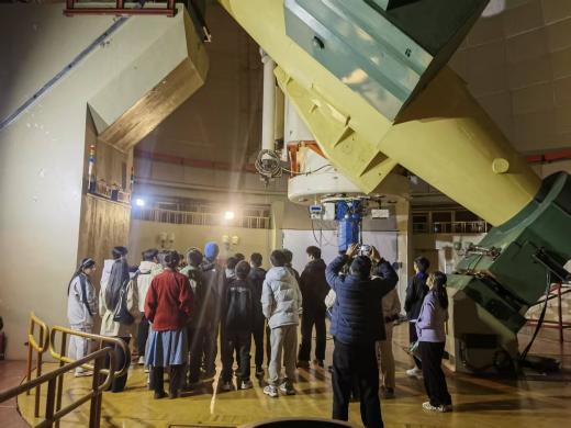 当晚,兴隆山区夜空澄澈,师生们迎来了期盼已久的实地观星环节。在工作人员指导下,同学们使用公共天文台望远镜对各类天体进行了观测。由于当地光污染程度远低于城市,大家首次清晰观测到银河系旋臂的壮美结构。夜空中不时划过的流星与缓缓移动的人造卫星,更增添了观测的趣味与惊喜。“通过反复微调设备才能获得清晰图像,让我深切体会到科研工作的严谨与精密”,这场亲身体验使同学们对天文实测研究有了更为直观的理解。