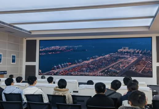 站在观景平台上,同学们目睹了无人集卡精准穿梭、桥吊自动抓取集装箱的作业场景。码头作业的高效与有序,引发了同学们的阵阵赞叹。青岛港工作人员介绍,青岛港自动化码头最根本的突破在于打破了国外技术垄断,码头由完全自主研发的A-TOS系统作为进行全局调度,并由A-ECS系统作为精准控制设备。从操作系统、数据库等软件,到设备电控系统、PLC等硬件,全部实现国产,在装卸效率、运营成本和绿色环保等多个维度展现了“中国方案”。同学们在参观后感慨:“看到青岛港集装箱全自动化码头,太震撼了,让我们体会到‘中国制造’正在向‘中国智造’迈进”。