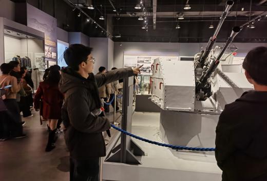 11月23日上午,同学们走进中国人民解放军海军博物馆。作为我国唯一一座反映中国海军发展的军事博物馆,这里陈列的历史照片、退役海军装备以及生动的多媒体展示,为同学们展现了人民海军从艰难创业到如今迈向深蓝的伟大跨越。从最初的“万国牌”小艇,到自主研发的航母、万吨驱逐舰、核潜艇和舰载机,每一步发展都凝聚着无数海军将士的心血与奉献。同学们深刻体会到,我国海军力量的蓬勃发展,离不开先辈们坚持不懈的创新精神和百折不挠的战斗意志。