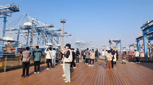 11月22日中午,同学们首站来到山东港口青岛港自动化码头。作为世界第四大港、中国第二大外贸口岸,青岛港率先投身智能化转型,探索深耕“人工智能+港口”新赛道,全力推进数据治理,形成了以方舟Taas大模型、高压岸电自行机器人、超大型港口全要素调度智能体等人工智能创新成果,让越来越多的科幻场景成为现实。这座全球装卸效率最高的自动化码头,高度融合了工业互联网、物联网、5G、大数据、云计算、人工智能等先进技术,实现了集装箱作业的智能决策和系统管理,背后不仅是技术突破,更是管理模式的重构。