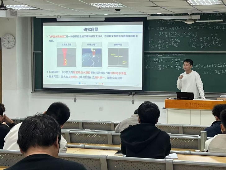 为拓宽本科生学术视野,引导同学们走近前沿科研、明晰专业发展方向,2026年4月1日下午,中国科学技术大学工程科学学院2025级3班特邀辛晨特任教授开展以激光微纳加工与智能医疗微机器人为主题的专业讲座。讲座由班主任金虎老师主持,班级全体同学参与本次活动,在前沿科技与工程实践的碰撞中,感受交叉学科的创新魅力。